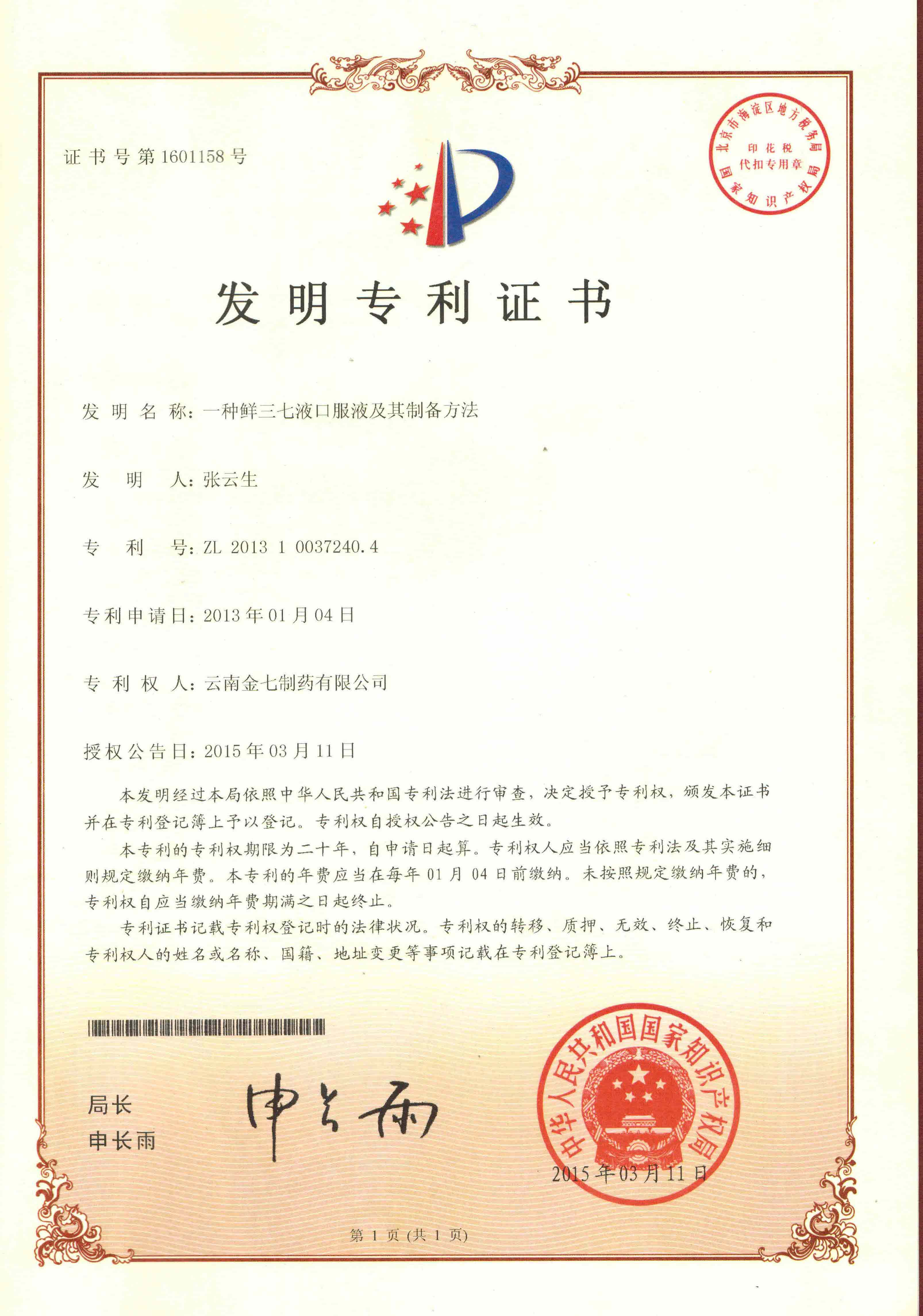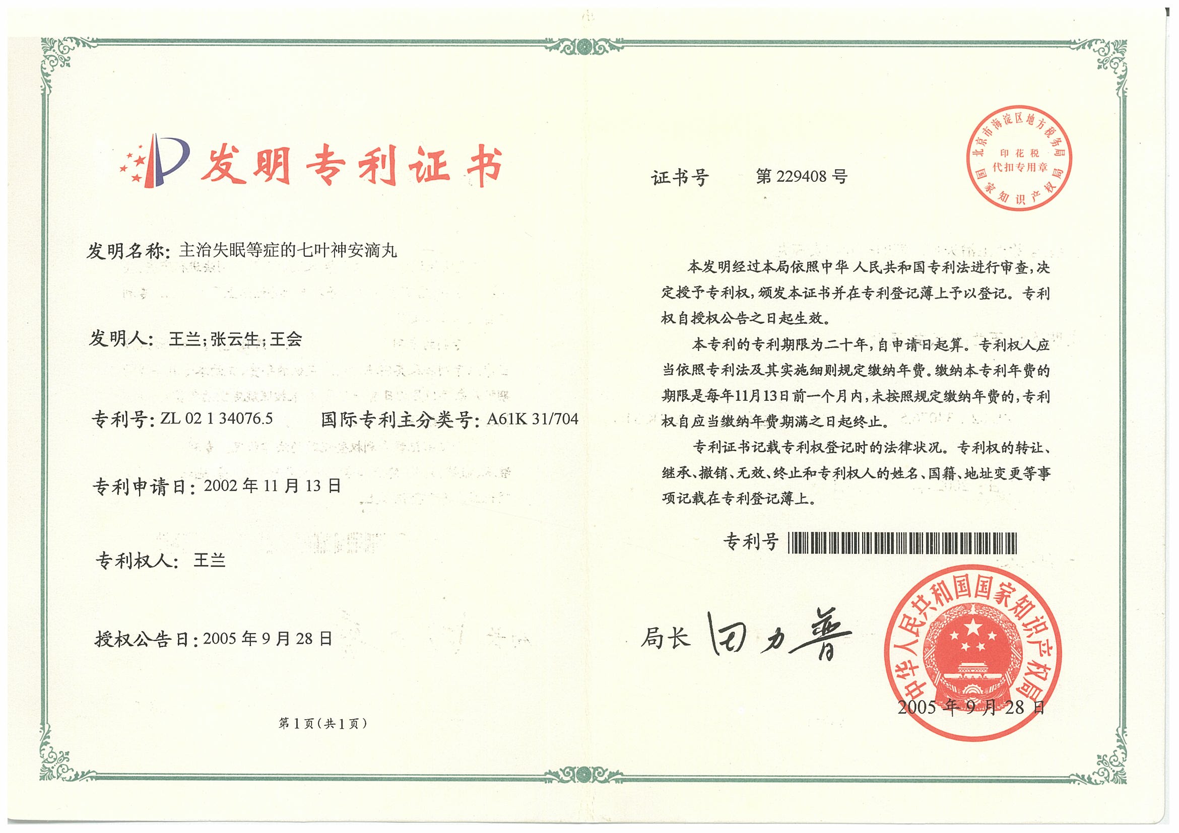 藥品生產(chǎn)批準(zhǔn)文號(hào)8個(gè),保健食品批準(zhǔn)文號(hào)2個(gè),其中藥品七葉神安滴丸、保健食品三七口服液為全國(guó)獨(dú)家專(zhuān)利品種。