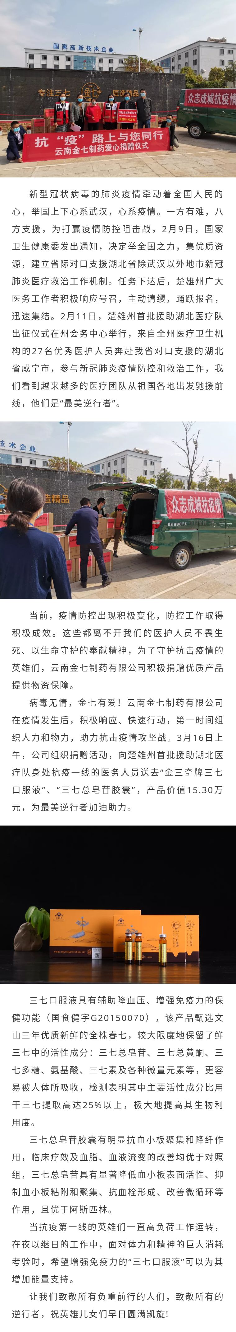 【資訊】向最美逆行者致敬,云南金七制藥有限公司捐贈三七口服液慰問一線醫(yī)護人員