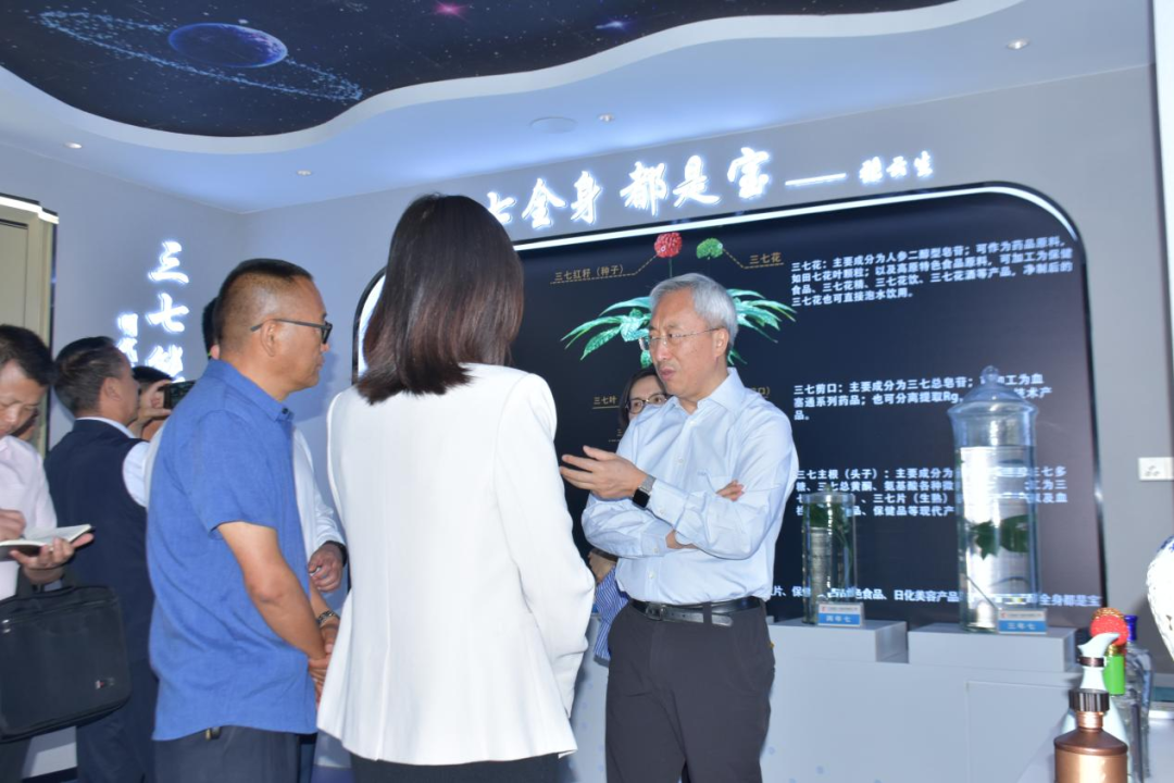 何波一行參觀了公司的三七科技體驗(yàn)館,公司總經(jīng)理史云龍向調(diào)研組成員詳細(xì)介紹了公司的發(fā)展歷程、技術(shù)優(yōu)勢(shì)、品牌建設(shè)、大健康產(chǎn)業(yè)布局及市場(chǎng)銷售等情況,并特別強(qiáng)調(diào)了公司在綜合利用三七全株資源的核心技術(shù)優(yōu)勢(shì)。