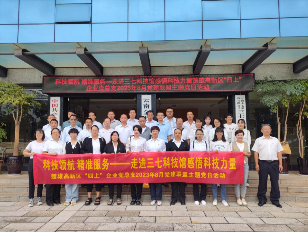 為進(jìn)一步增強(qiáng)黨組織的凝聚力和戰(zhàn)斗力,充分激發(fā)廣大黨員干事創(chuàng)業(yè),在新時(shí)代擔(dān)當(dāng)新使命、新起點(diǎn)實(shí)現(xiàn)新作為。8月22、8月23日兩天,楚雄高新區(qū)生物醫(yī)藥行業(yè)黨總支暨太陽(yáng)歷文旅公司黨支部、楚雄高新區(qū)“四上”企業(yè)黨總支相繼在金七制藥開(kāi)展“學(xué)思踐悟新思想,踐行初心擔(dān)使命”、“科技領(lǐng)航,精準(zhǔn)服務(wù)——走進(jìn)三七科技館感悟科技力量”黨建聯(lián)盟主題黨日活動(dòng),金七制藥總經(jīng)理、黨支部書(shū)記史云龍帶領(lǐng)公司黨支部黨員參加本次活動(dòng)。