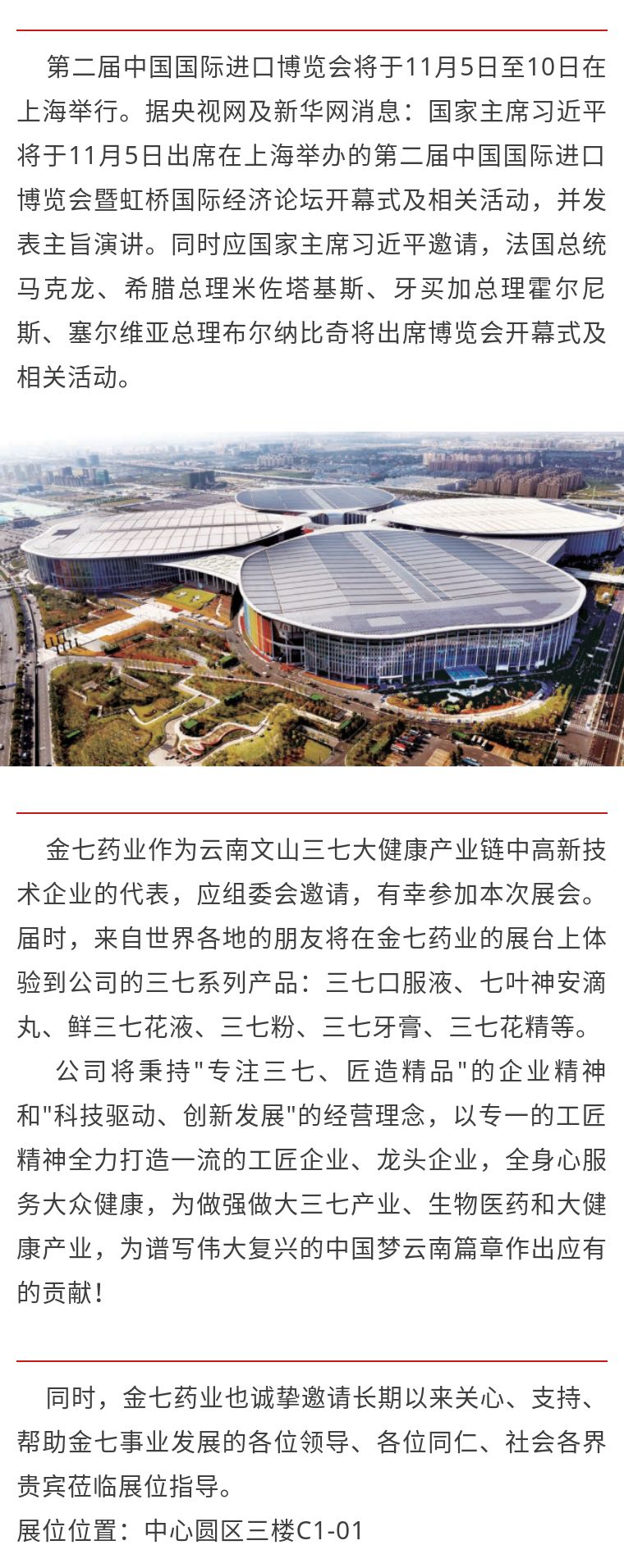 【資訊】金七藥業(yè)應(yīng)邀參加第二屆中國國際進口博覽會