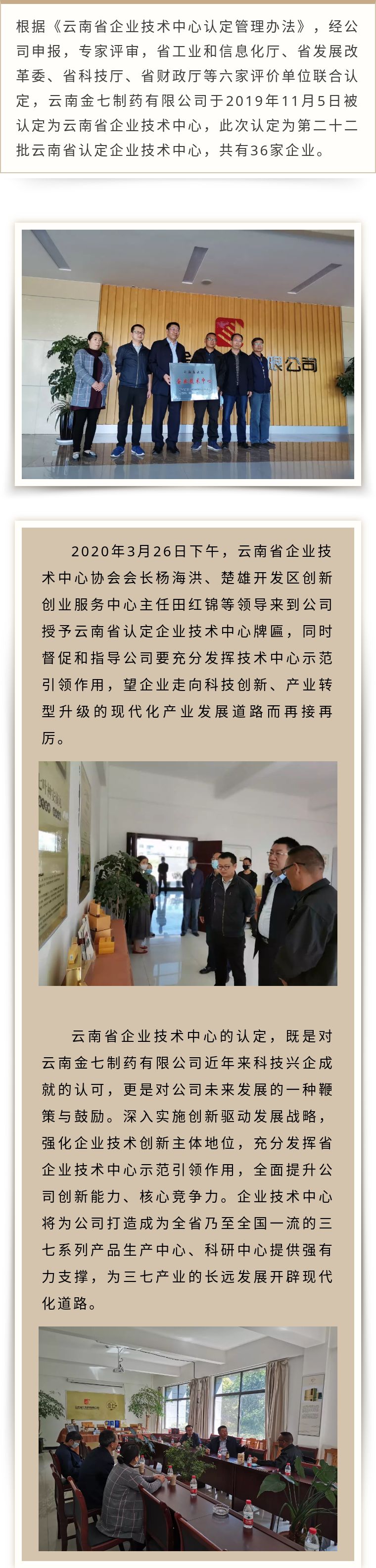 【資訊】云南金七制藥有限公司喜獲“云南省企業(yè)技術(shù)中心”授牌