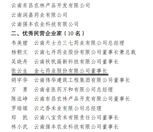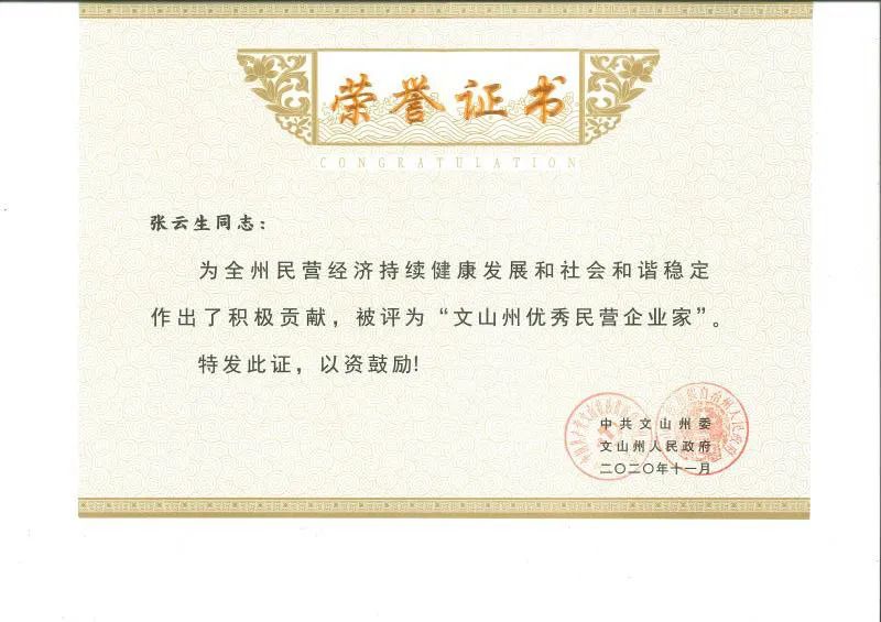11月16日,文山州委、州政府發(fā)文表彰優(yōu)強民營企業(yè)優(yōu)秀民營企業(yè)家和就業(yè)創(chuàng)業(yè)工作先進集體先進個人。