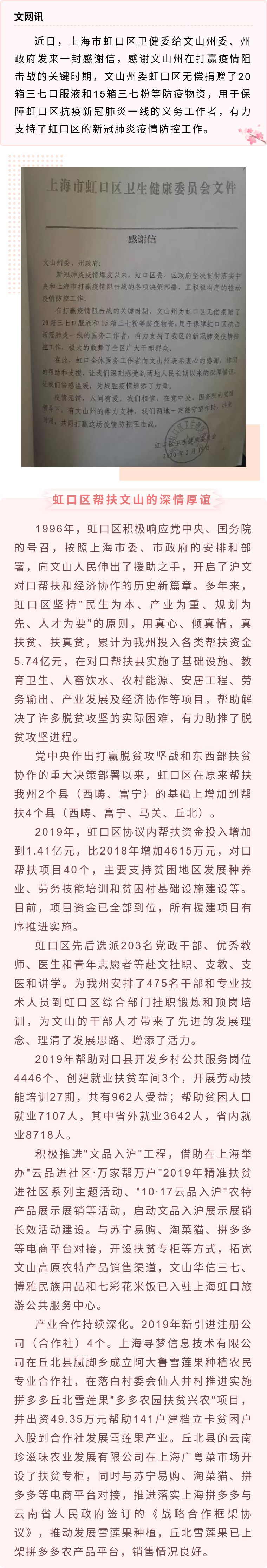 【轉(zhuǎn)載】上海虹口區(qū)衛(wèi)健委:感謝文山州捐贈三七產(chǎn)品