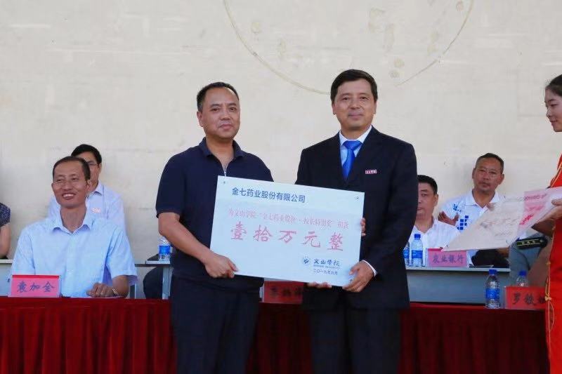 李炳澤校長向捐資助學(xué)企業(yè)贈送捐贈牌匾,并與企業(yè)代表一同向榮獲“校長特別獎”的楊愛敏等64名2019級新生頒發(fā)了證書。