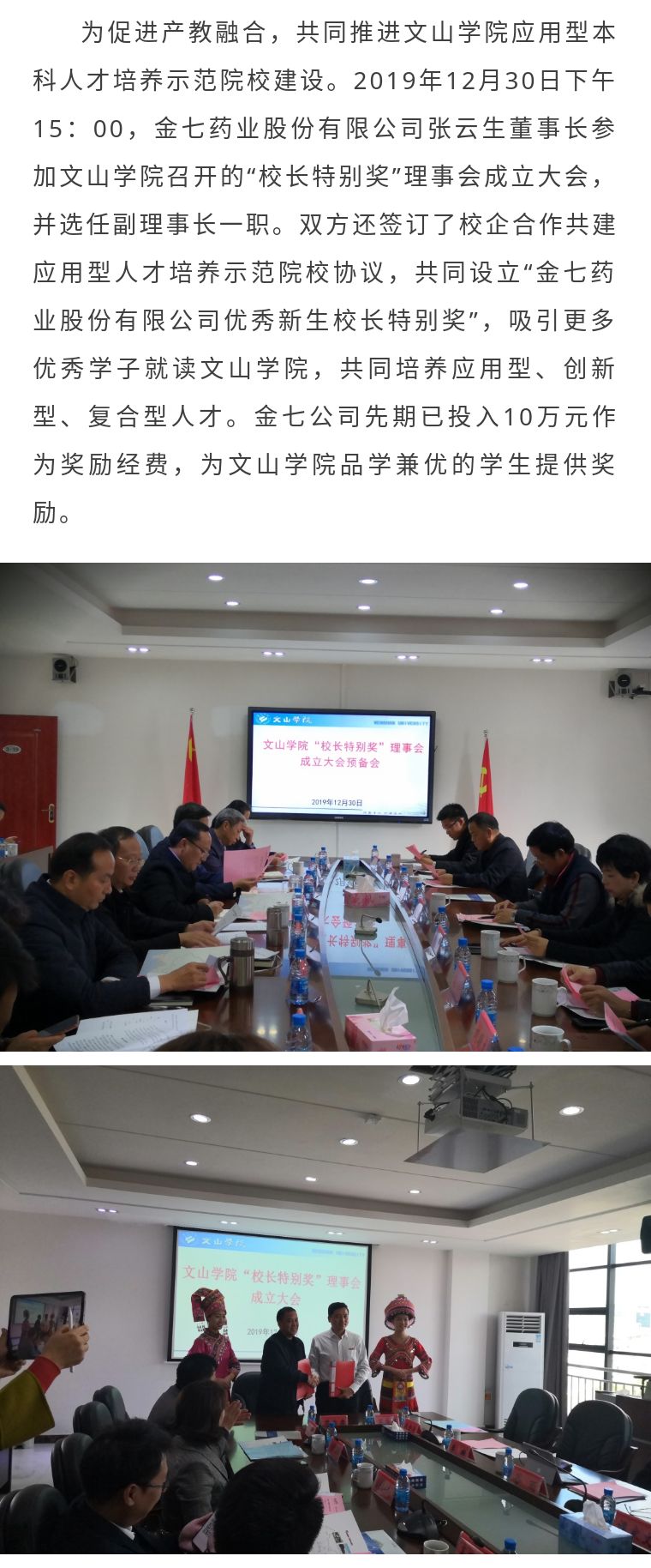 【資訊】金七藥業(yè)股份有限公司張云生董事長參加文山學院“校長特別獎”理事會成立大會并選任副理事長