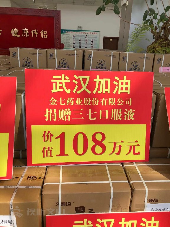 在文山大地,一些三七企業(yè)得知文山三七被列入抗擊病毒藥材之一后,紛紛伸出援助之手,先后兩次捐贈(zèng)三七,全州21家三七企業(yè)向武漢和上海捐贈(zèng)三七產(chǎn)品總價(jià)值705萬(wàn)余元。其中金七藥業(yè)股份有限公司捐贈(zèng)三七口服液100件,價(jià)值108萬(wàn)元。